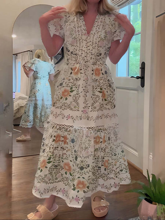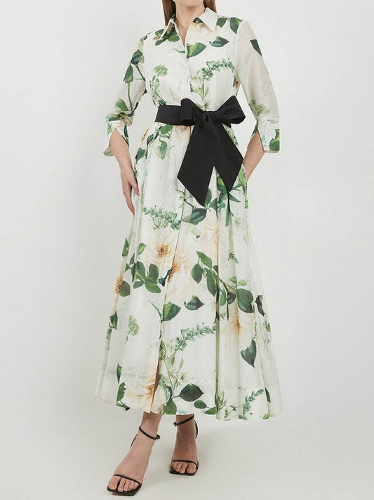 Floral Print Split Scoop Neck 3/4 Sleeve Dress