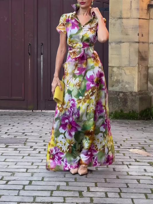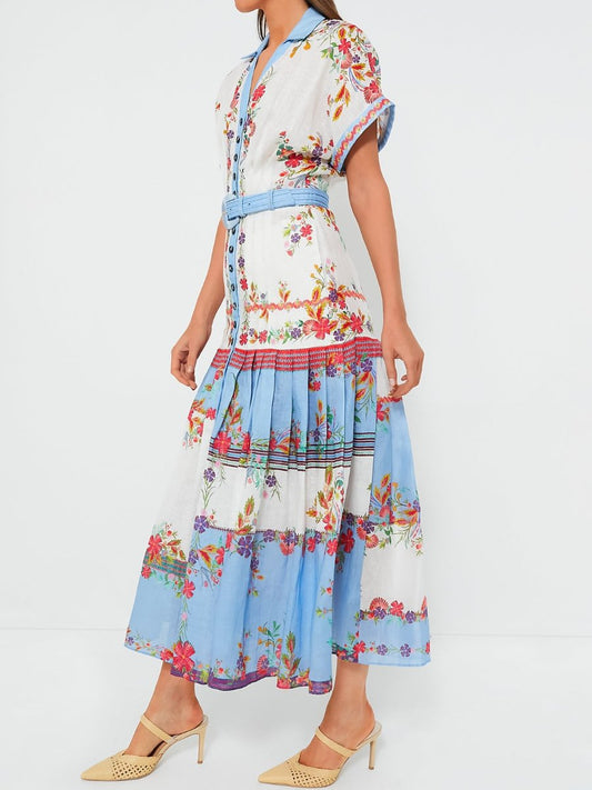 Floral-print Button Up Belted Maxi Dress