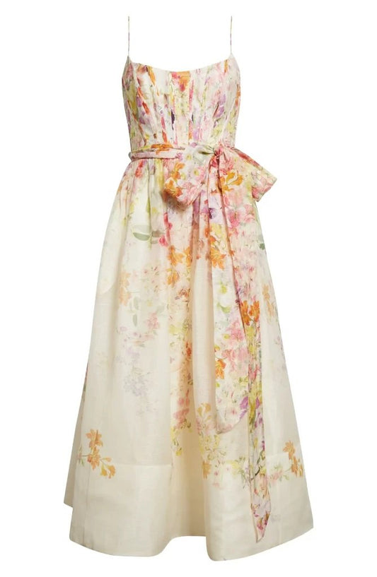 FLORAL WAIST ELEGANT DRESS
