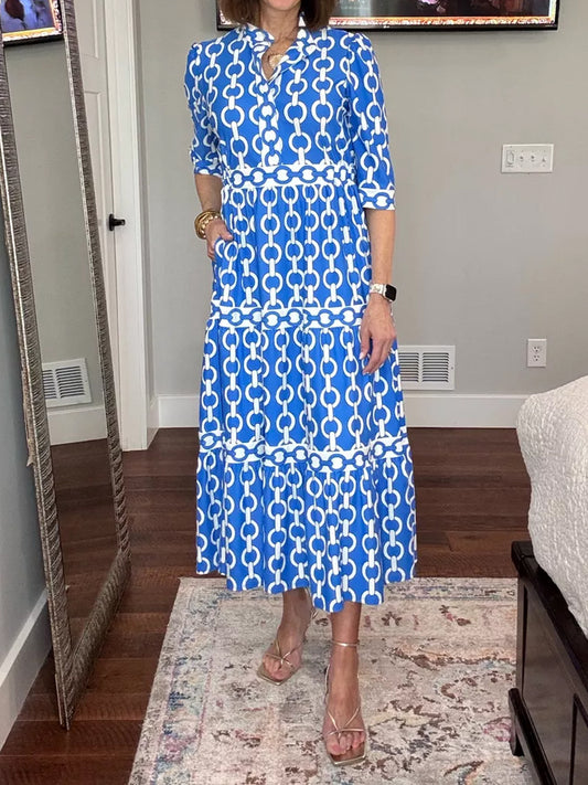 Printed Patchwork Long Sleeve Classic Maxi Dress