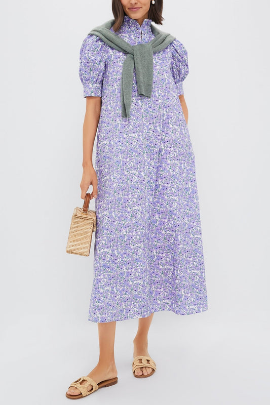 Purple Poppies Ruffle Collar Cotton Maxi Dress