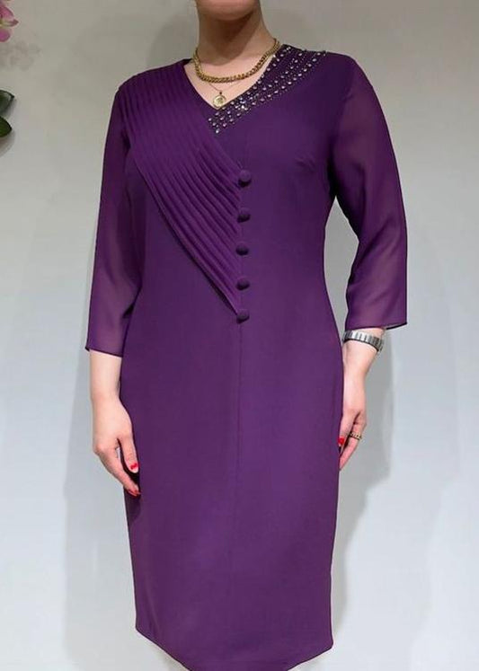 Purple Elegant V-Neck Midi Dress
