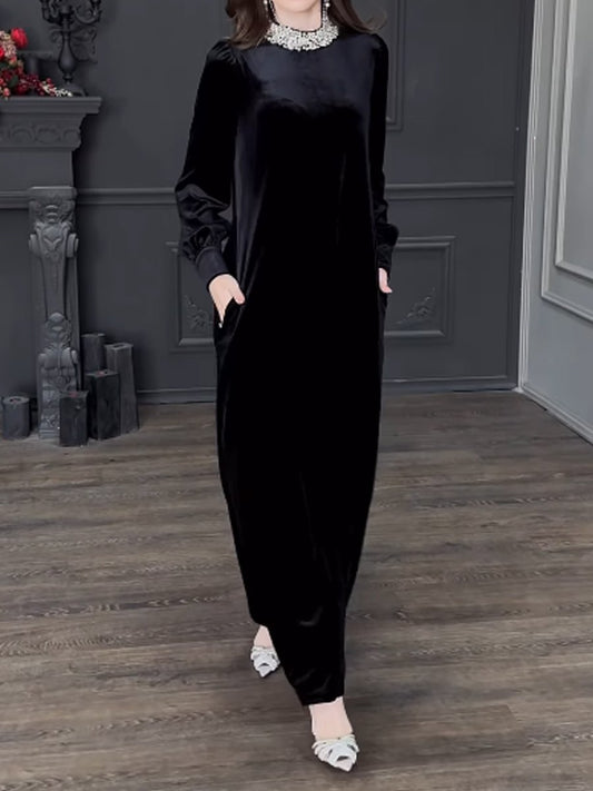Rhinestone Sparkle Pockets Velvet Dress