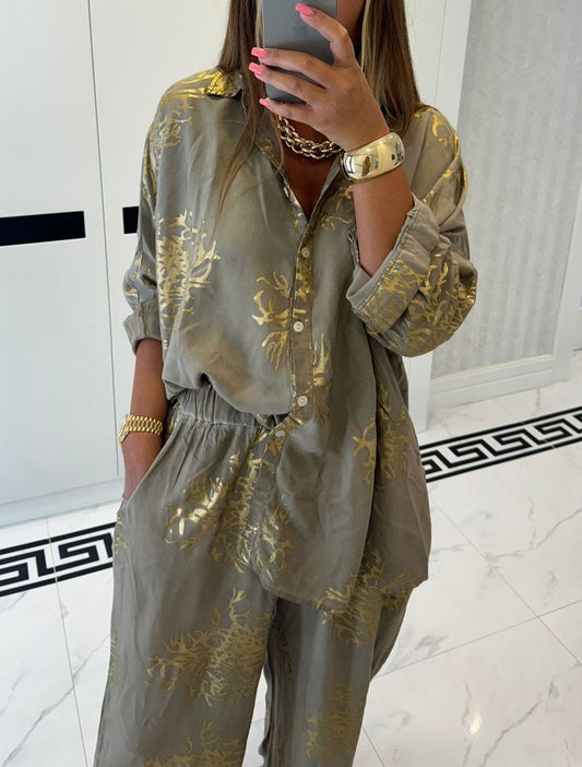 Elegant And Comfy Shirt Trousers Two-piece Set