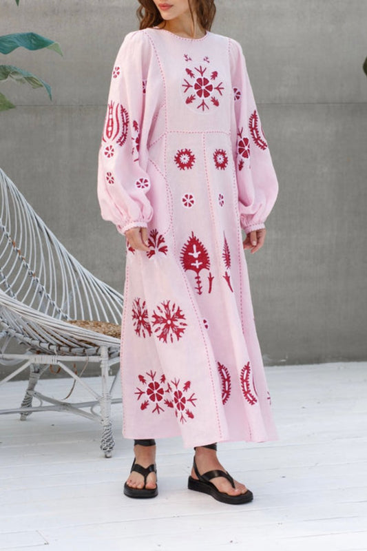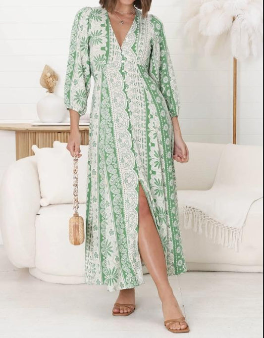 V Neck Lace Up Printed Chiffon Maxi Dress