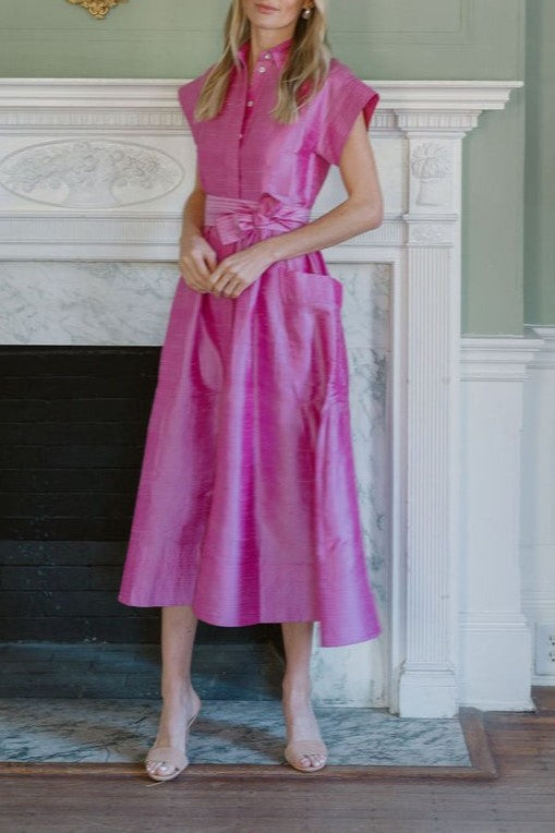 Printed V Neck Puff Sleeve A-Line Maxi Dress