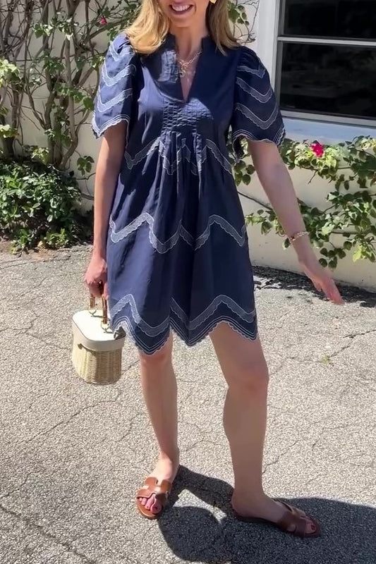 Lace Drop Waist Scalloped Hem Two Pieces Dress
