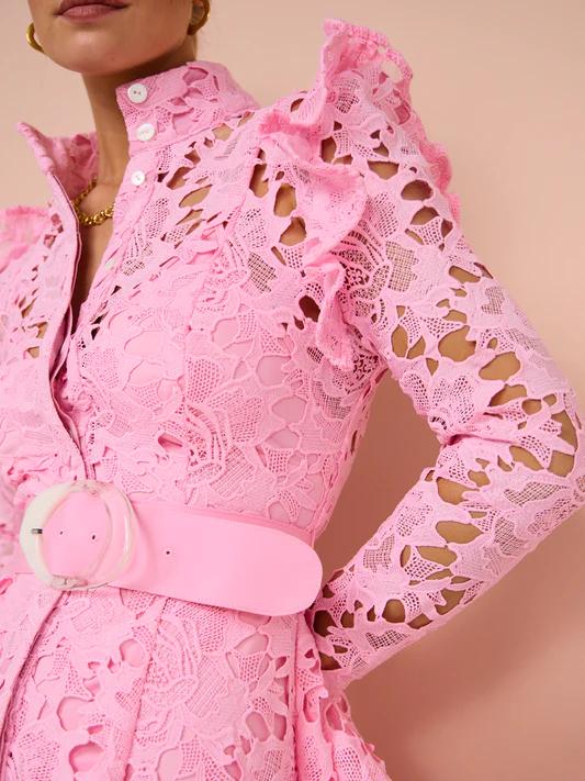 Candy Pink Lace Butterfly Sleeve Midi Dress