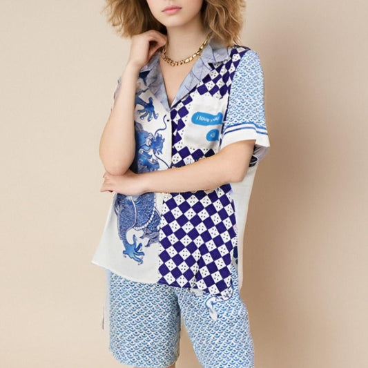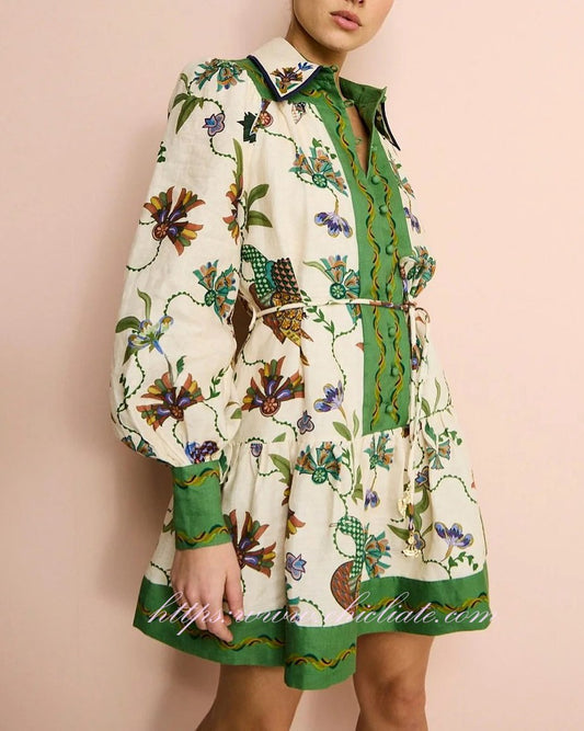 UNIQUE PRINT BALLOON SLEEVE SHIRT MINI DRESS