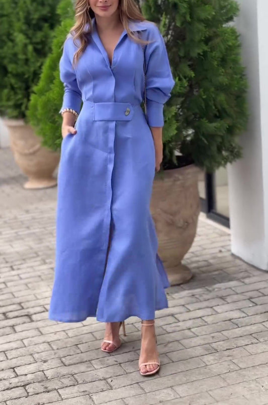 Slit Hem Solid Short Sleeve Midi Shirtdress