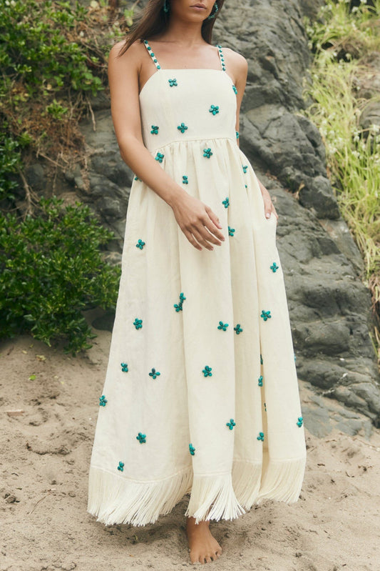 Braided Drawstring Fringe Midi Dress