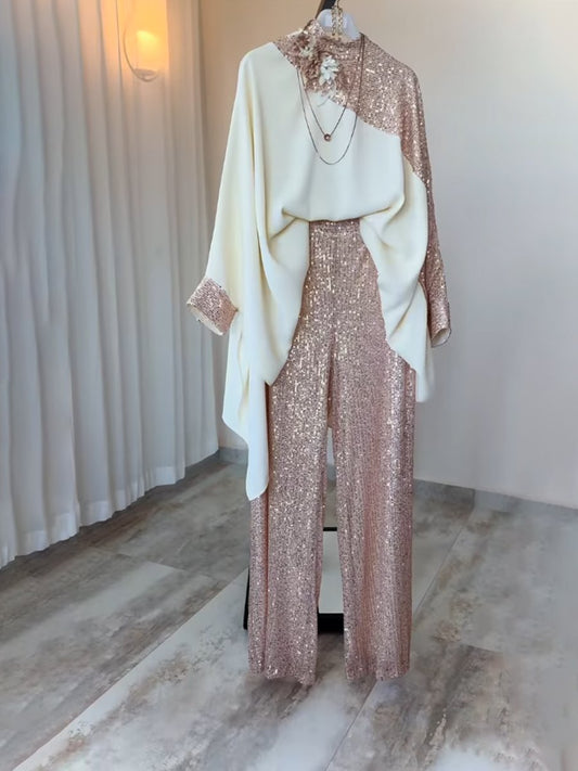 Fashion Casual Loose Sequin Patchwork Two-piece Set