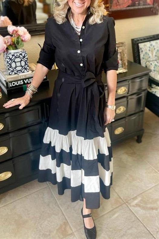 Striped Long Sleeve Midi Shirt Dress