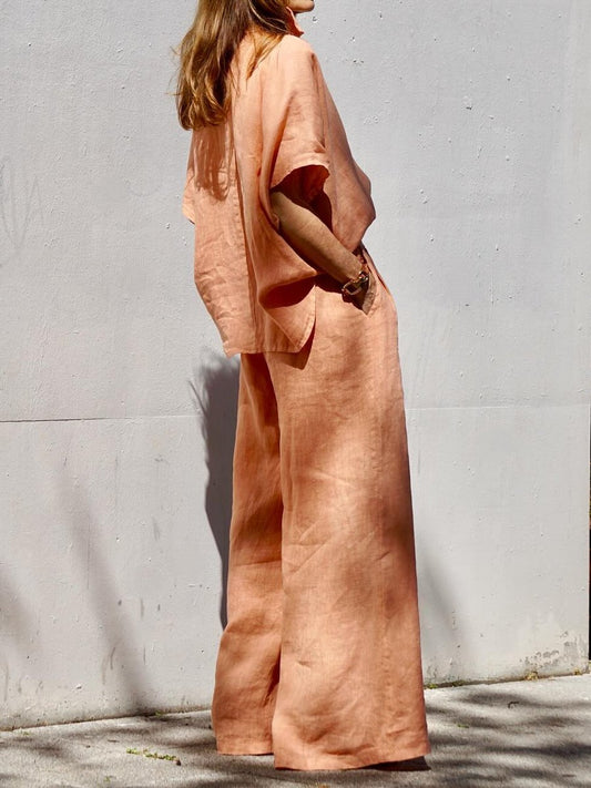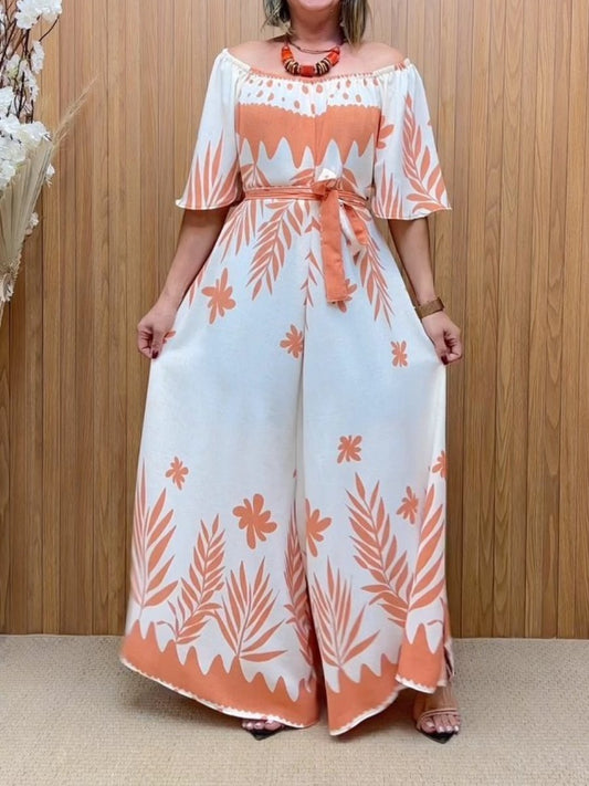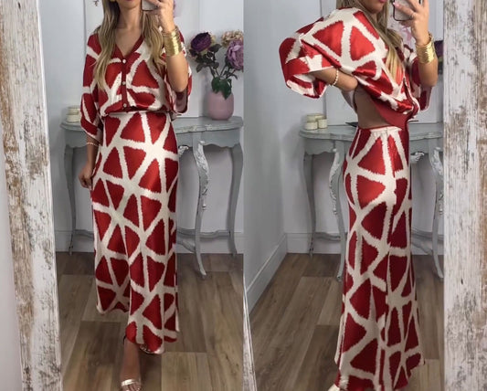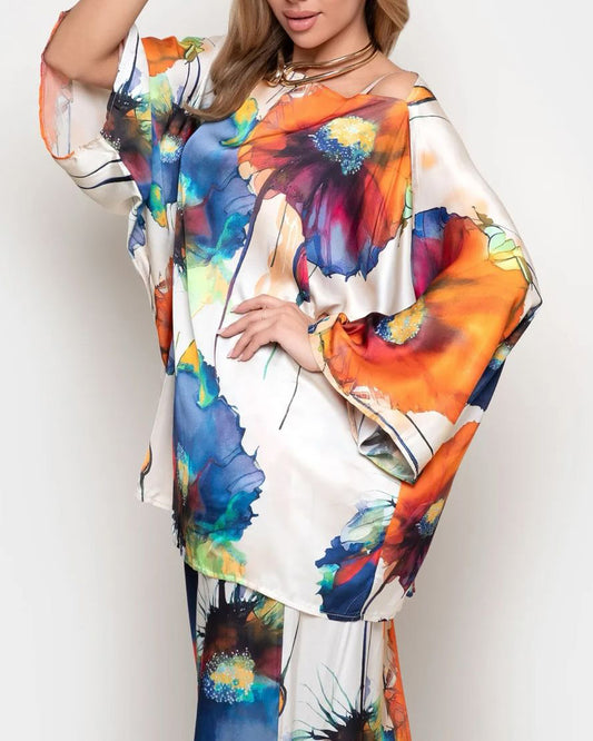Elegant Satin Loose Printed Batwing Sleeve Set