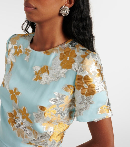 Boat Neck Printed Party Maxi Dress