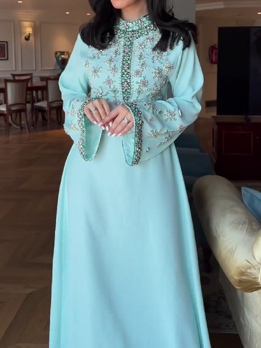 Sky Blue Glitter Long Sleeve Straight Dress