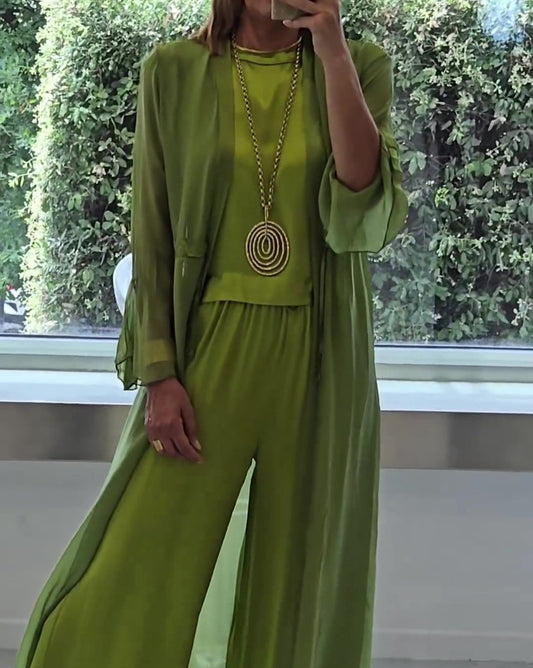 Silk Sleeveless Stretch Wide Suits Mesh Jacket Two-piece Set