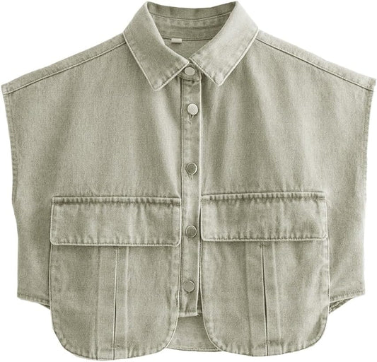Women‘s Cropped Button Down Denim Top