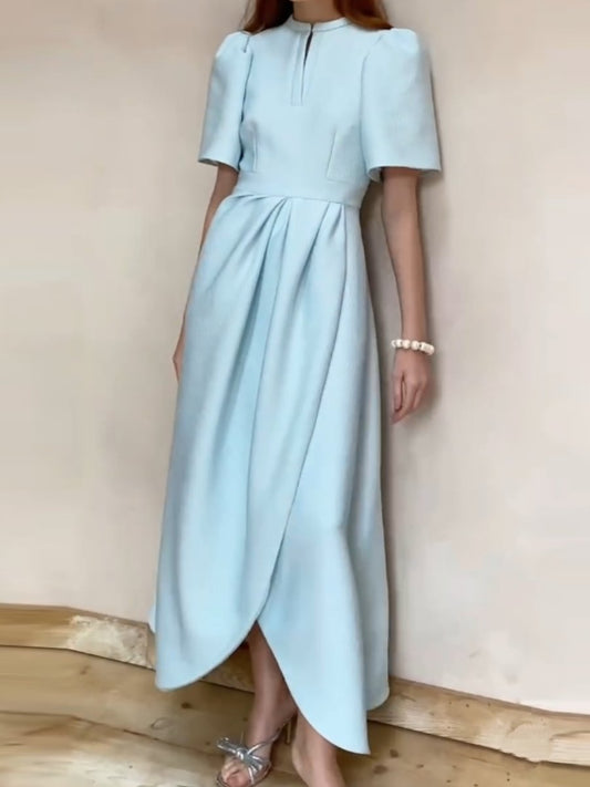Blue Butterfly V-neck Lantern Sleeve Dress
