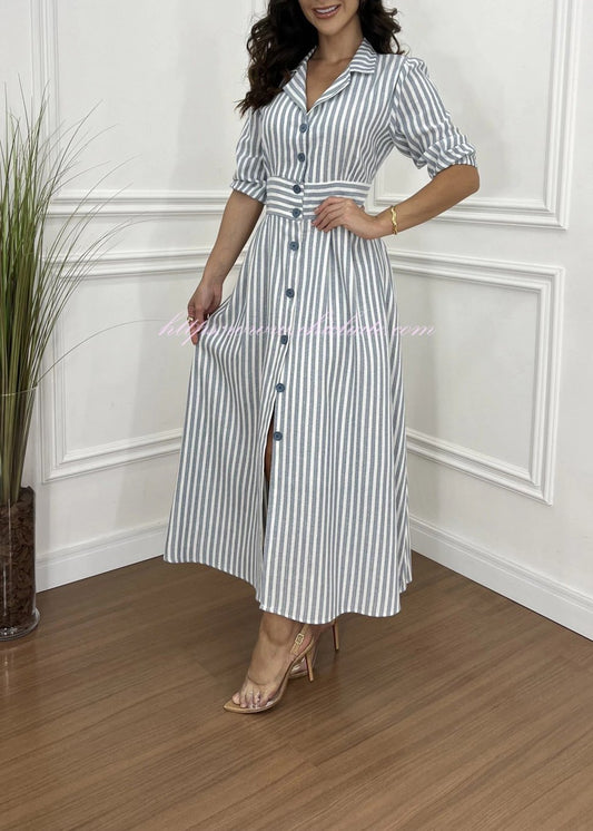 Blue Butterfly V-neck Lantern Sleeve Dress