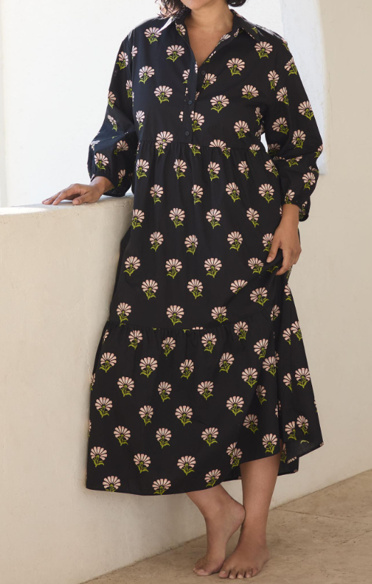 Stripe Long Balloon Sleeves Woven Wrap Detail Shirt Dress