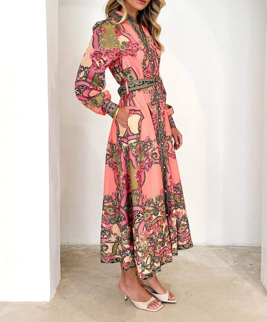 Chic Pink Long Sleeve Maxi Dress