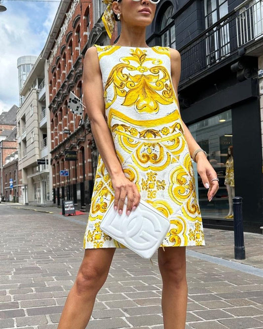 Vintage Elegant Flower Printed Sleeveless Evening Dress