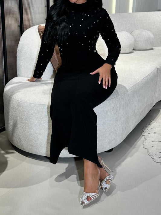 Elegant Rhinestone Sparkle Slit Hem Party Midi Dress