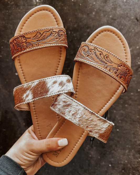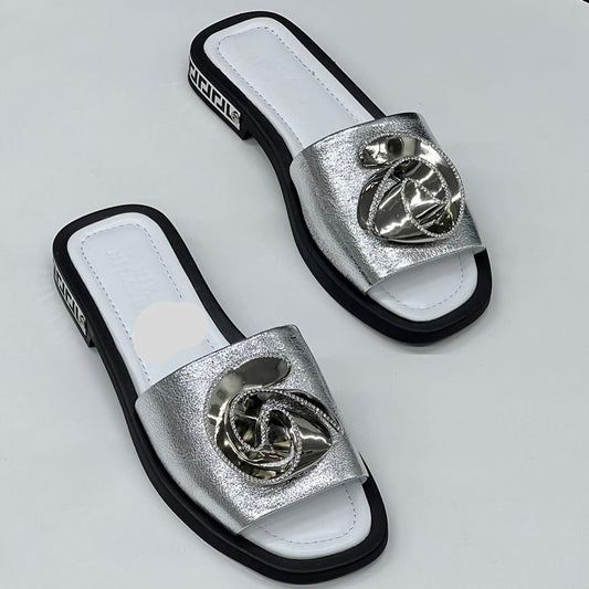 Ladies fashion pattern two strap slippers