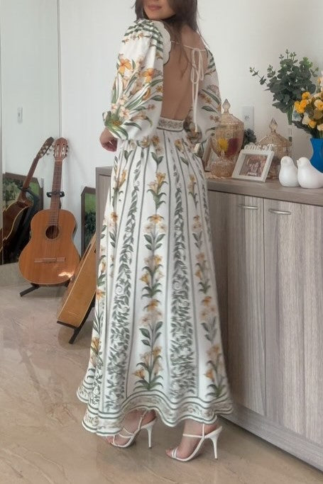 Antonia Square Neck Daffodil Print Dress