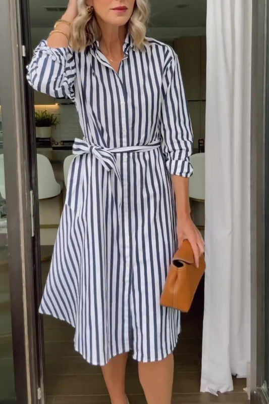 Women's Striped Elegant Shirt Dress