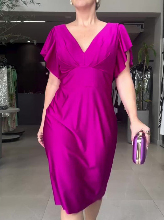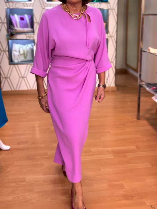 Mena Feather Cuffs Crewneck Pocket Casual Mini Dress