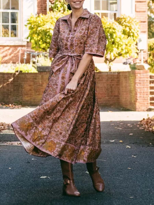 Printed Lace Up Short Sleeve Shirtdress