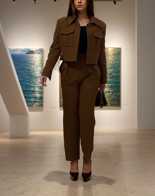 Cropped Jacket With Slim-fit Overalls 2pc Set