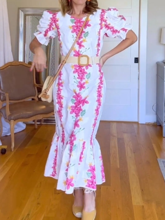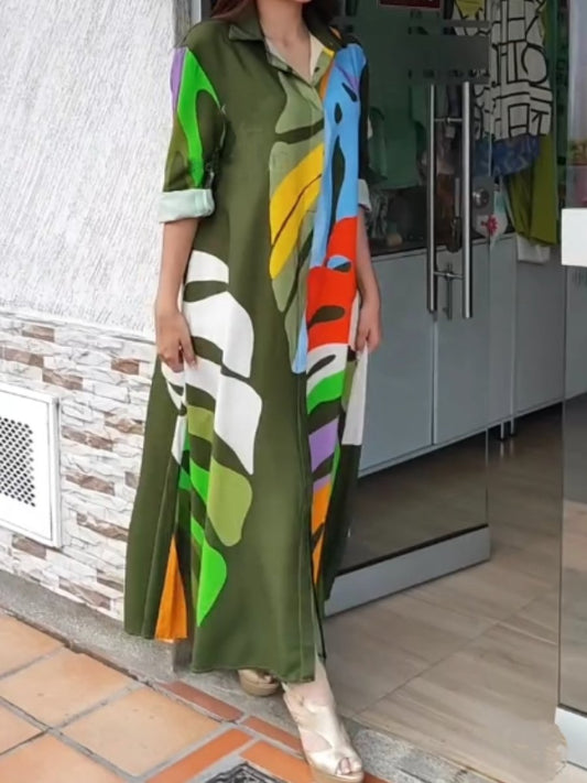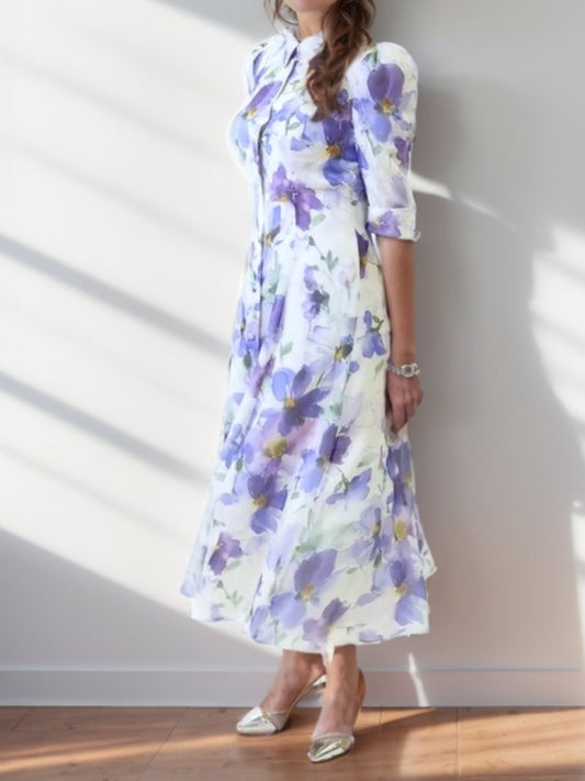 Loose Casual Solid Color Short Sleeve Cotton Linen Dress