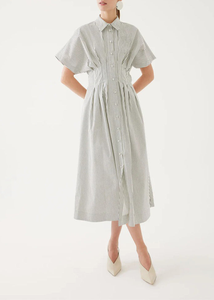 This dress is beautiful and the fabric feels so comfy. I received so many compliments. The dress runs a little big. I purchased an xs and had to get it tailored. For reference I am 5ft. 110lbs.