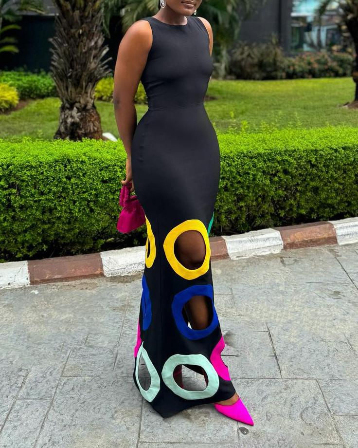Colorful Donut Hollow Maxi Dress