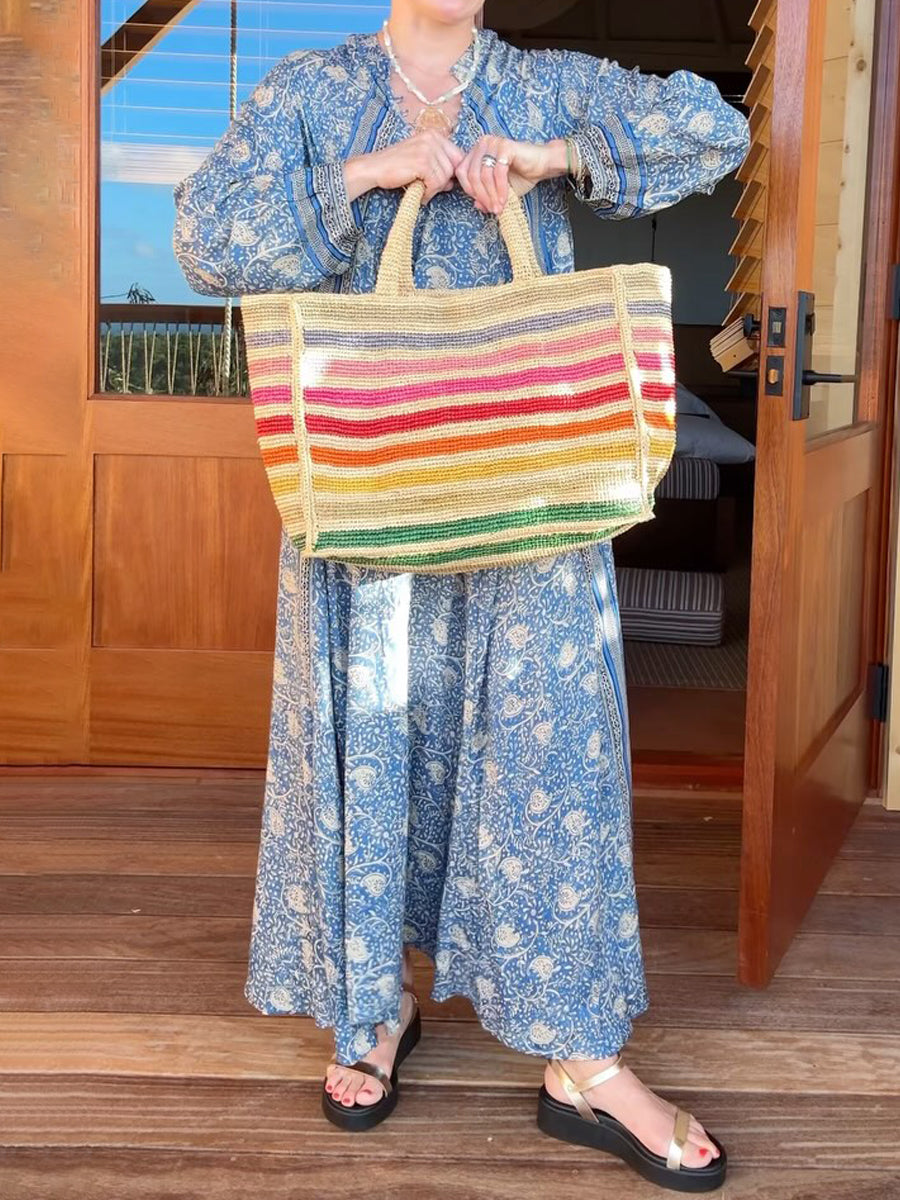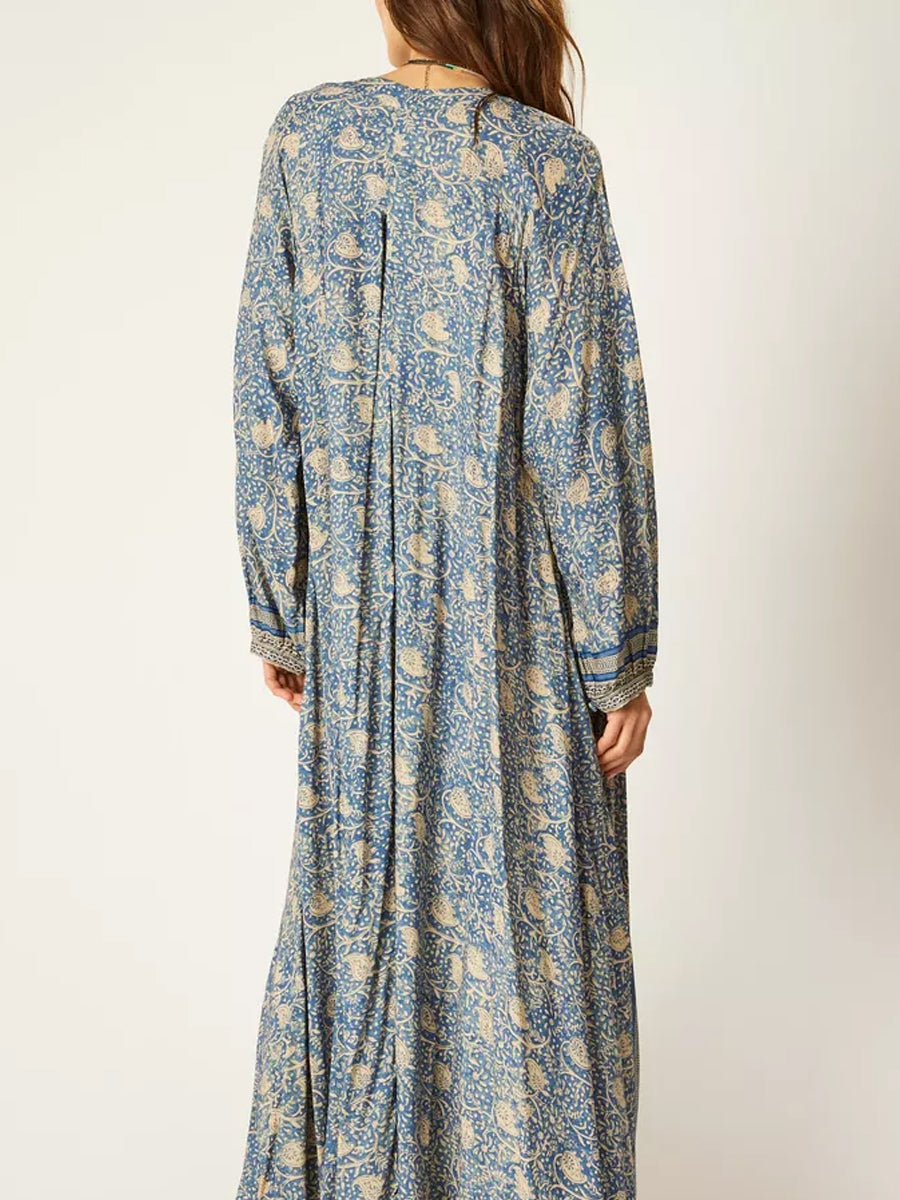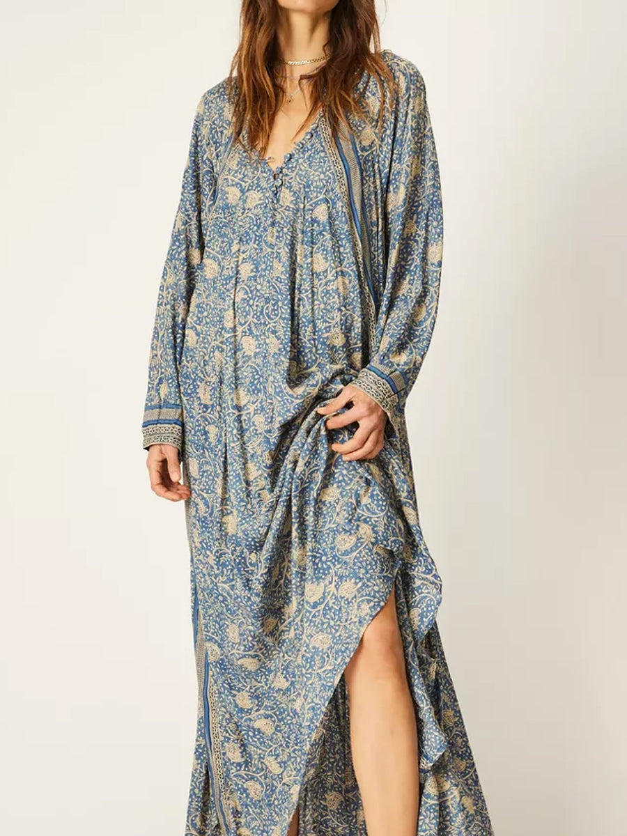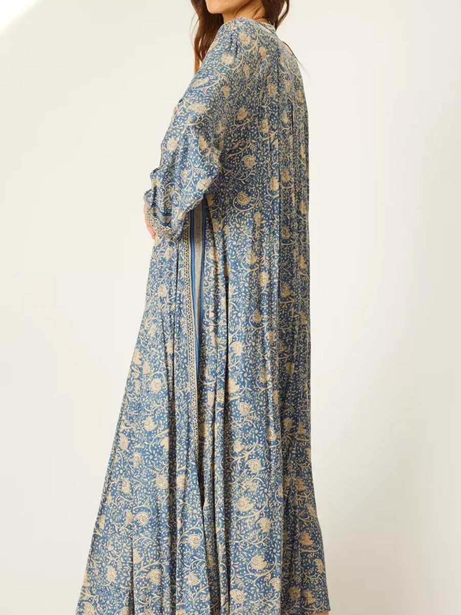 Deep V-neck With Covered Buttons Printed Dress