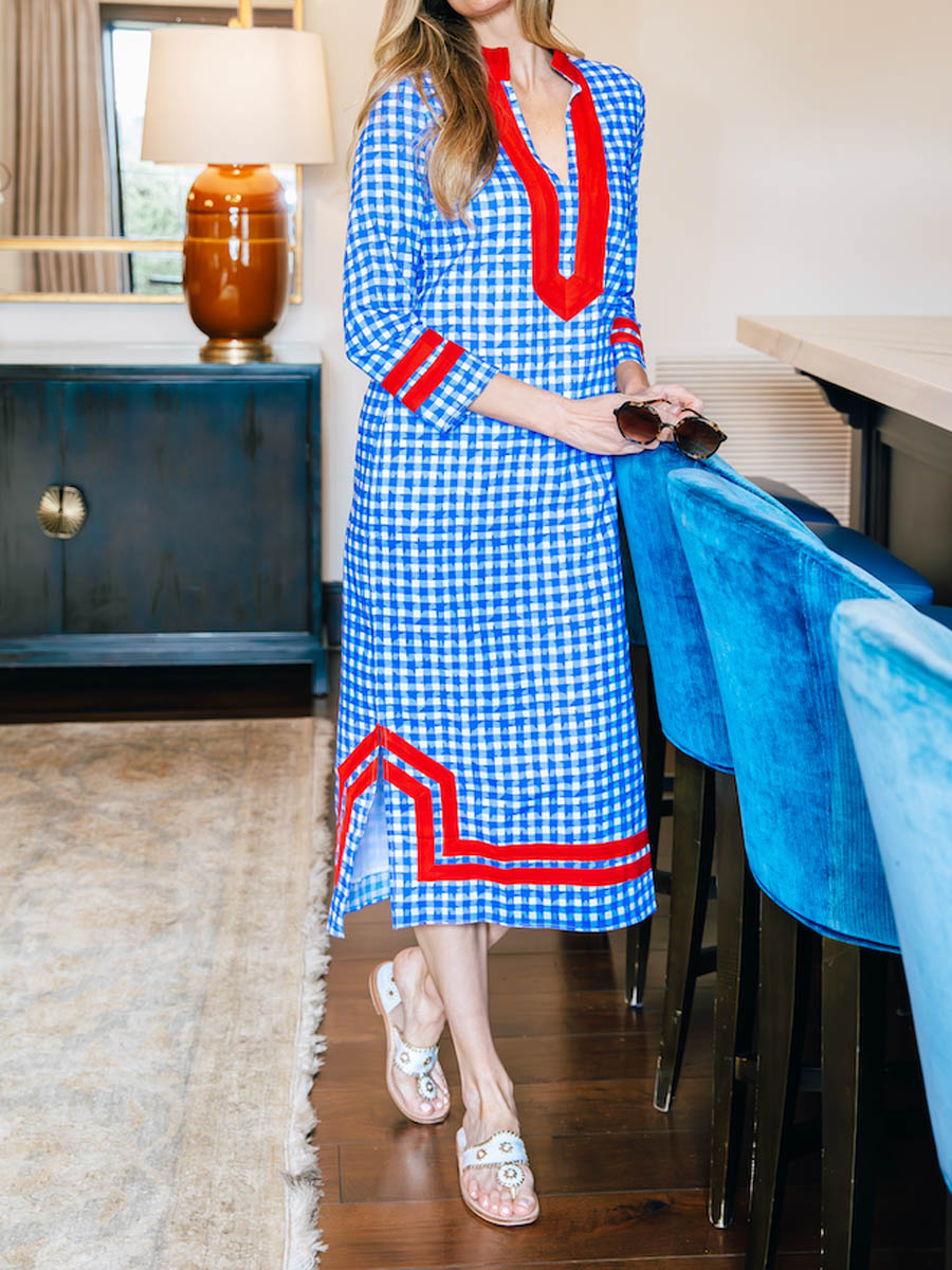 Printed Patchwork Long Sleeve Classic Maxi Dress