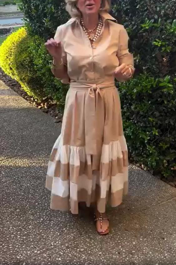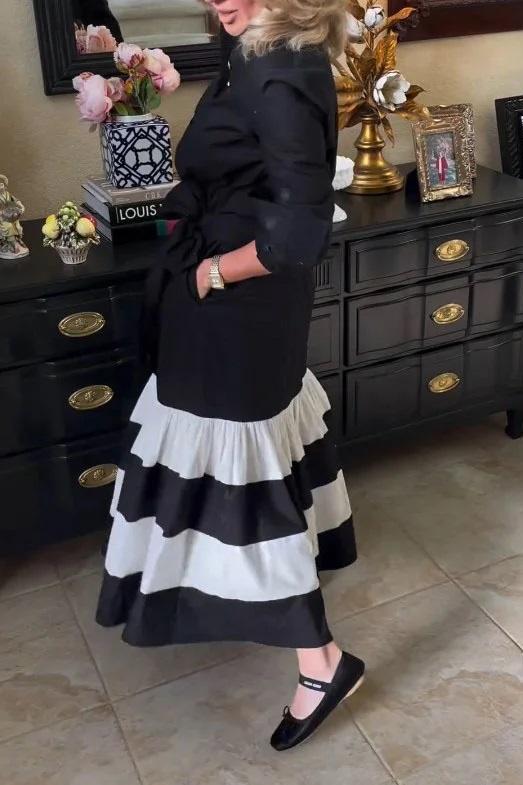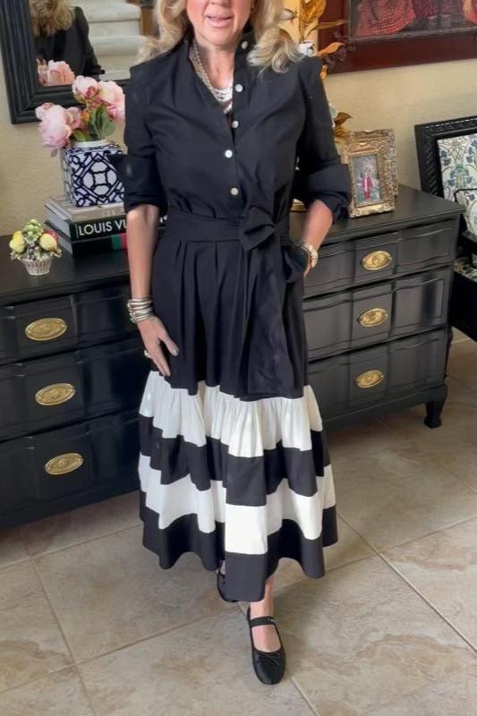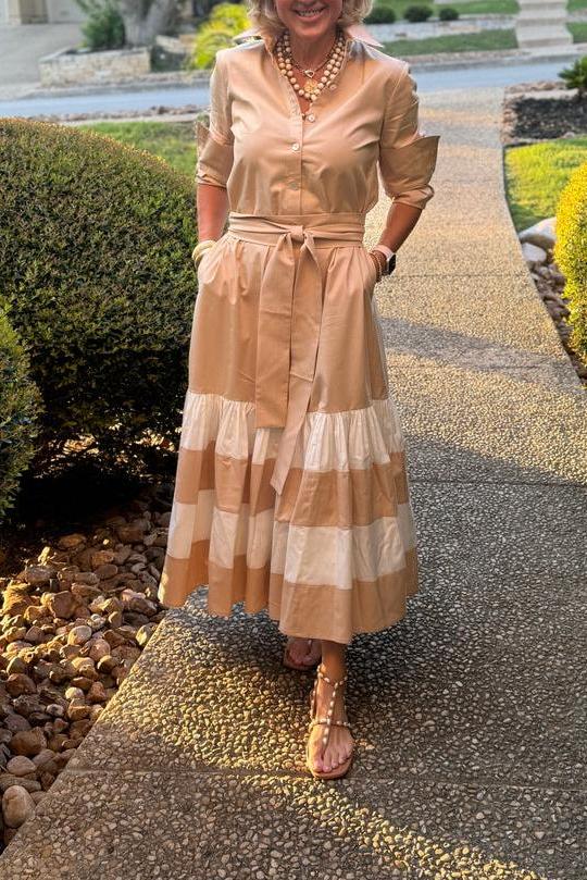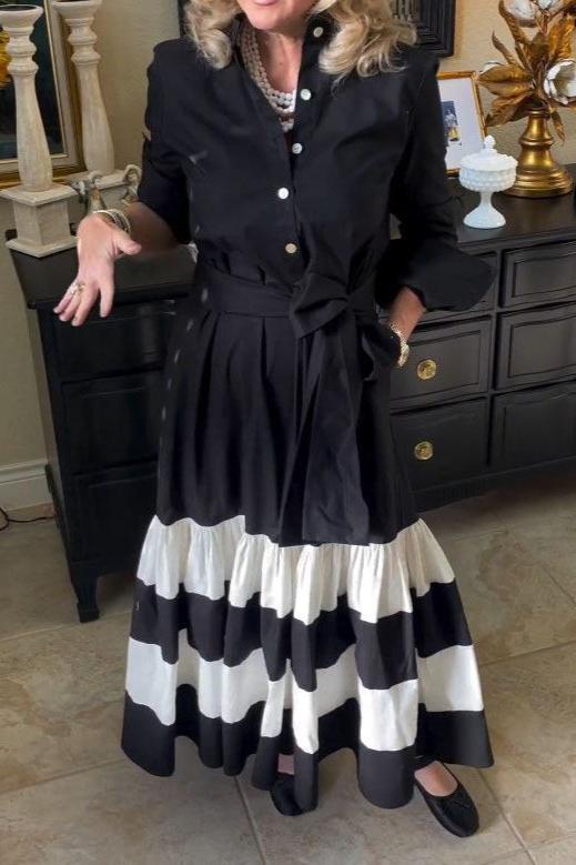 Striped Long Sleeve Midi Shirt Dress