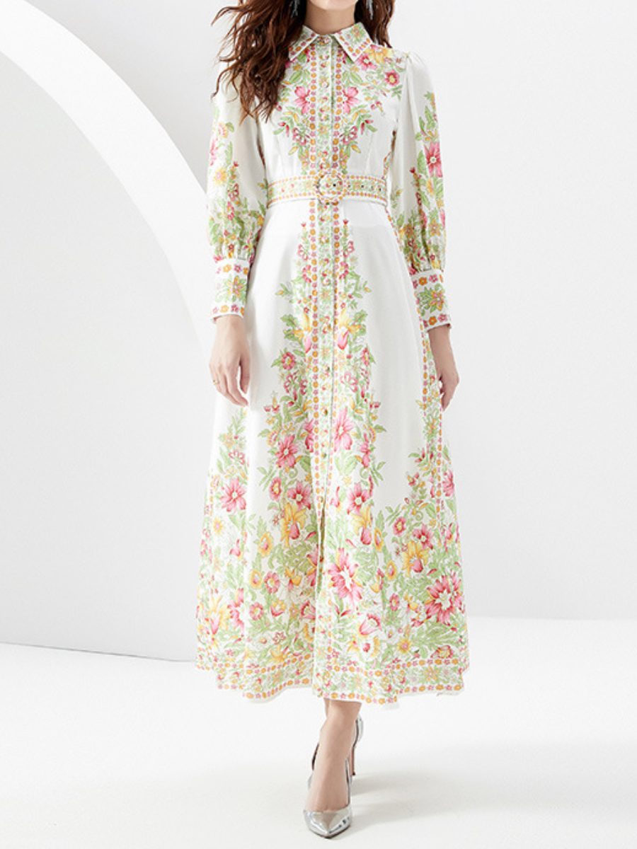 Vintage Print Shirt Maxi Dress
