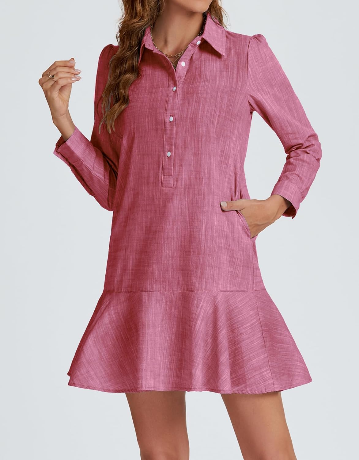 Waisted Ruffle Hem Mini Shirt Dress