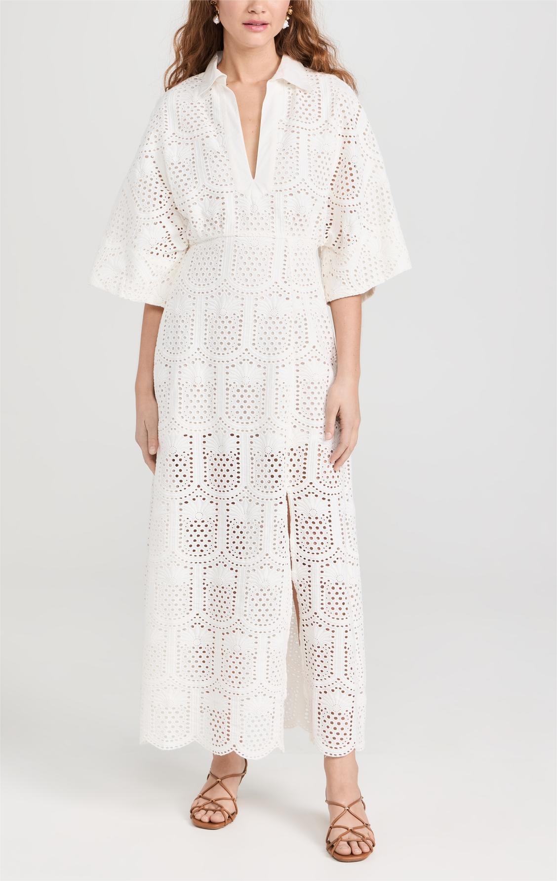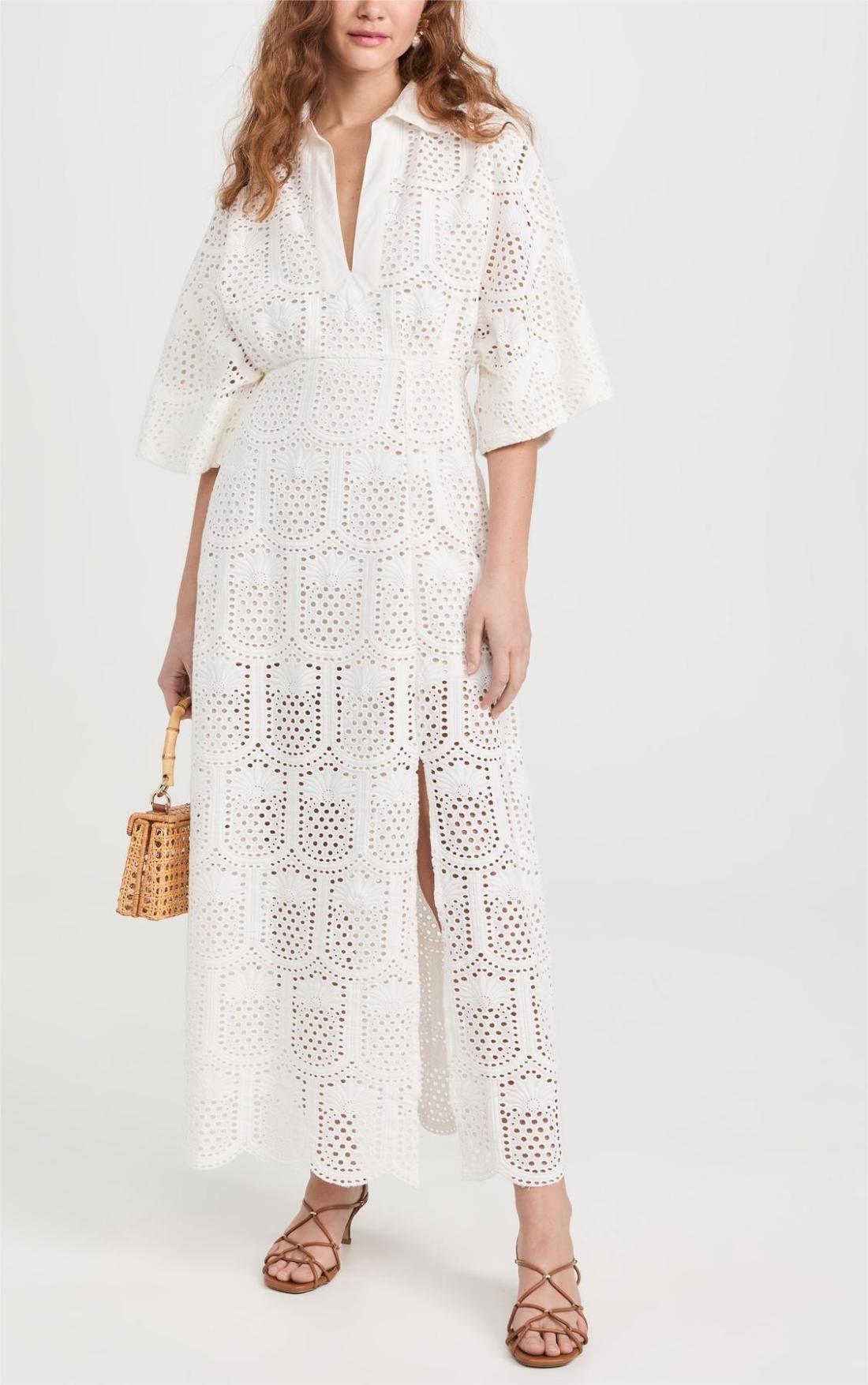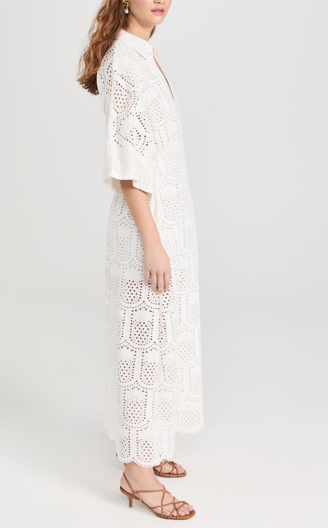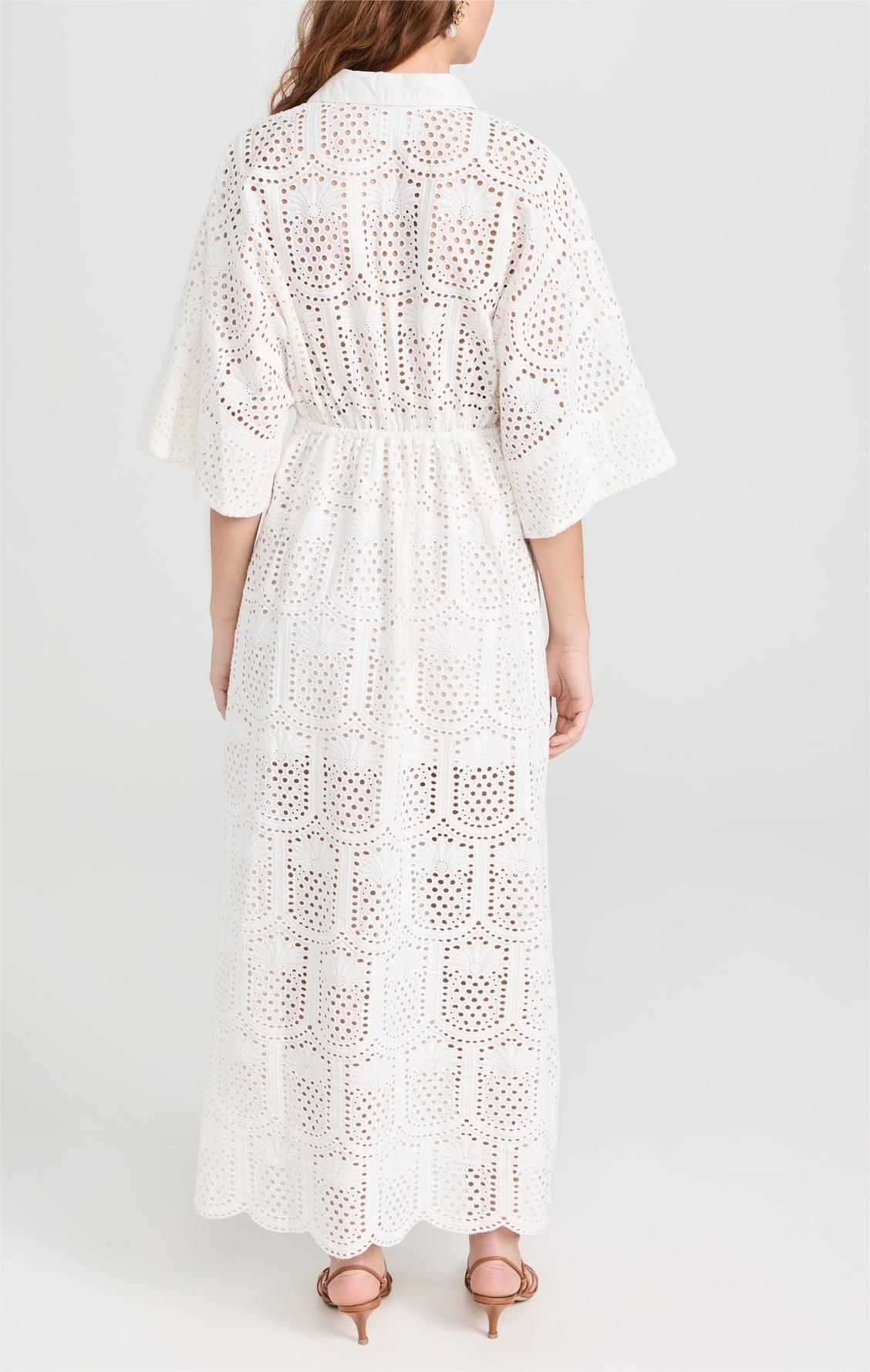 White Cutout Floral Shirt Dress
