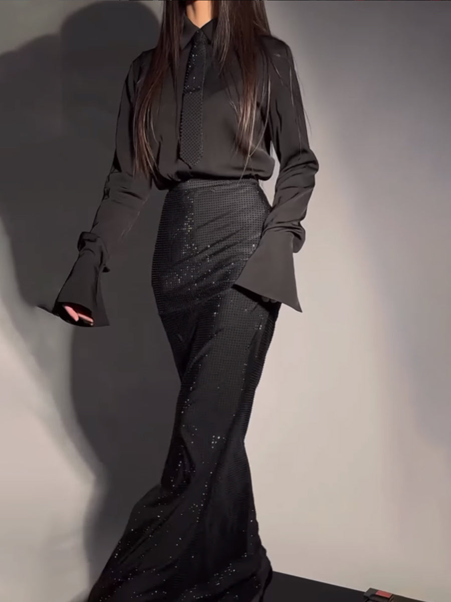 Fashion Elegant Hot Drilling Split Two Pieces Dress
