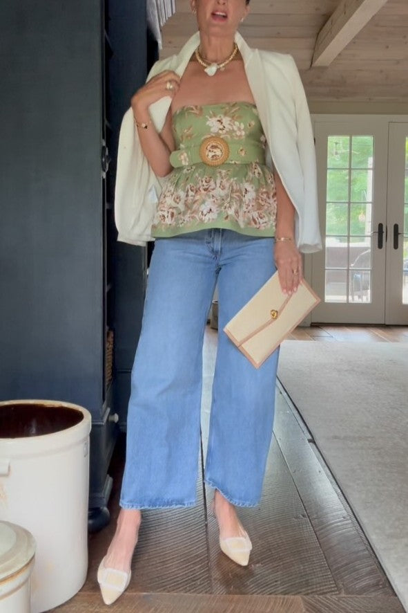 Floral Peplum Strapless Top