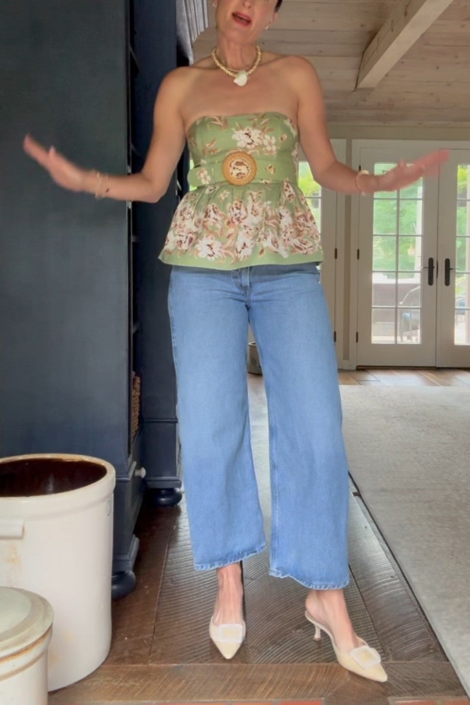 - Separate belt with raffia buckle