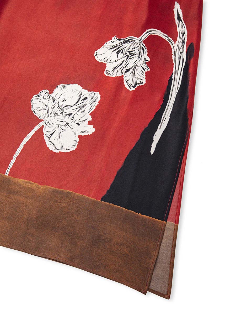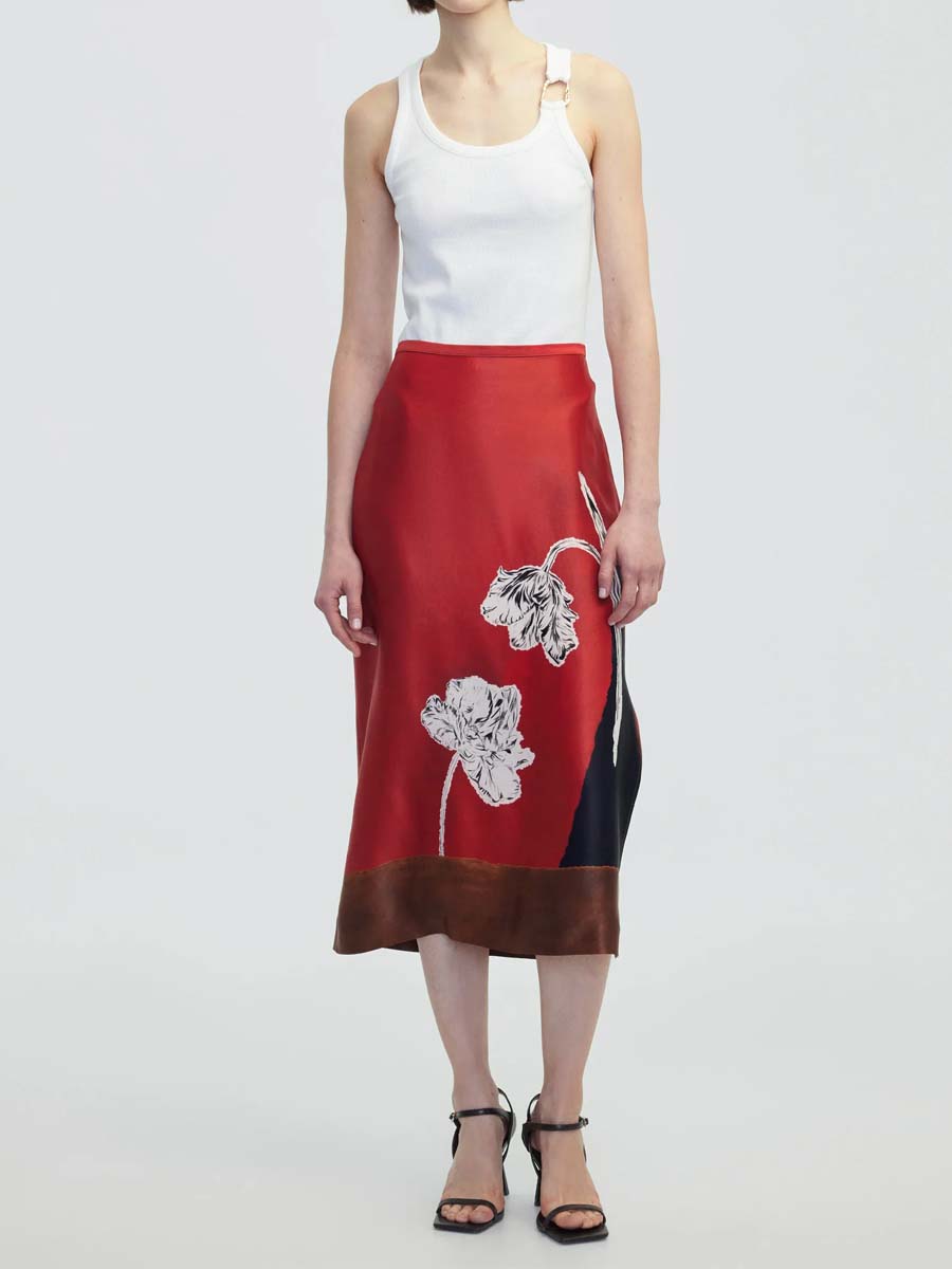 Flower Print Patchwork Midi Skirt