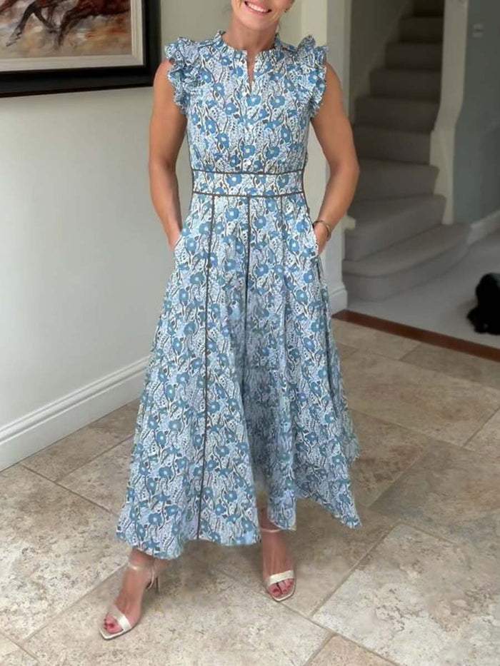 Ruffled detailing at the armholes add a feminine finish to the piece.