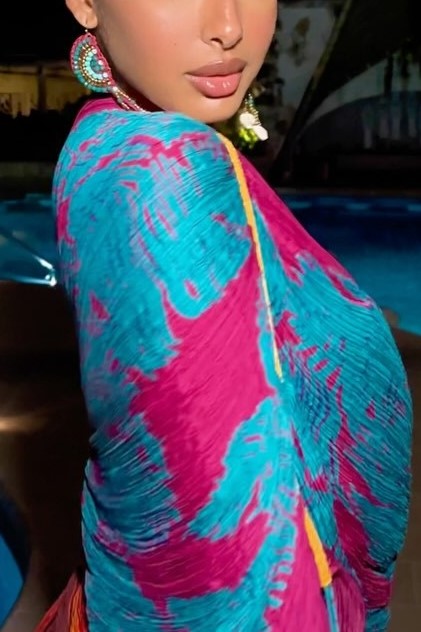 Printed Multicolor Pleated Irregular Dress