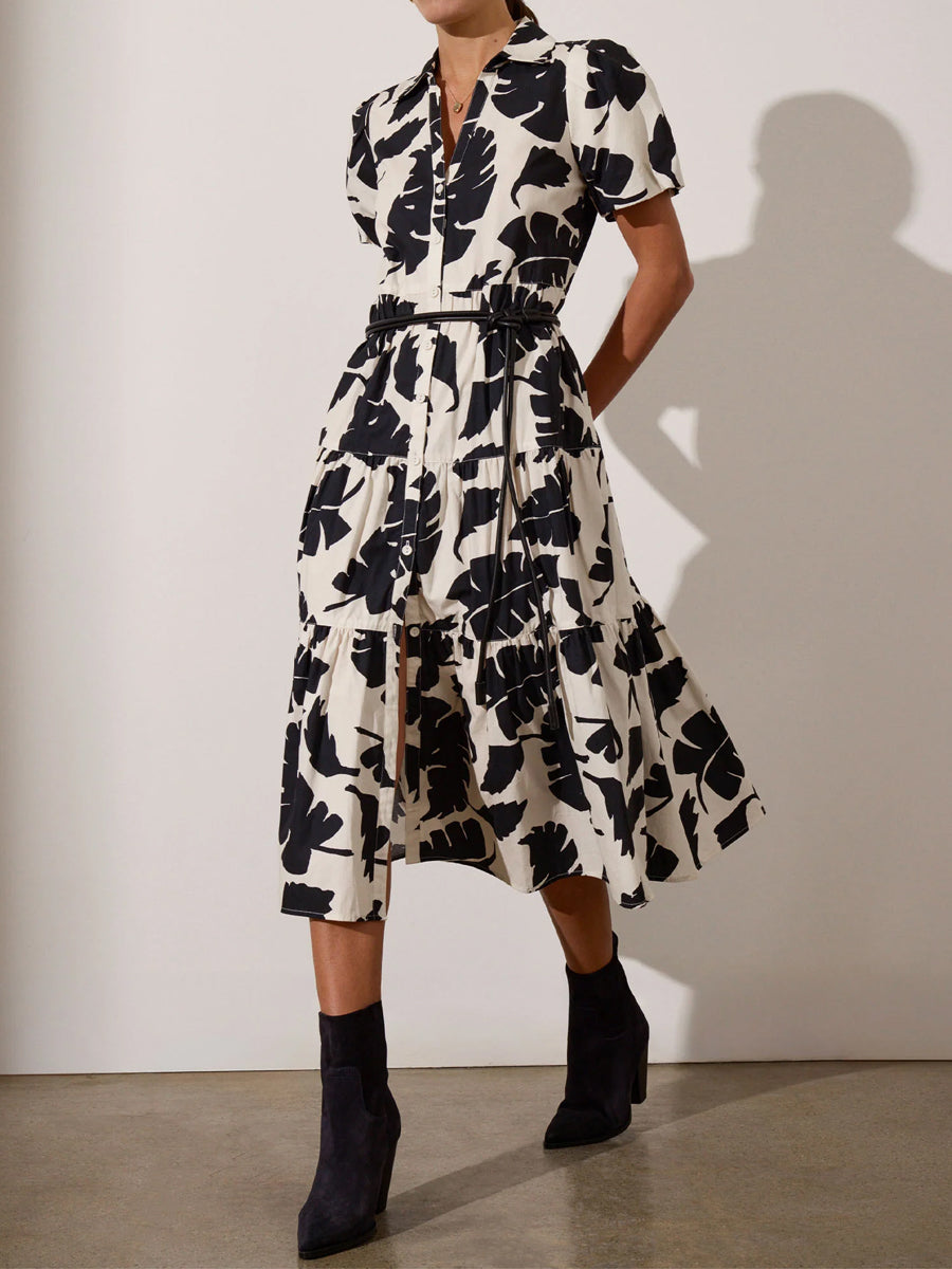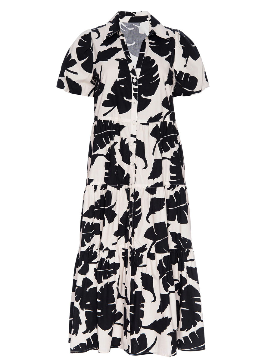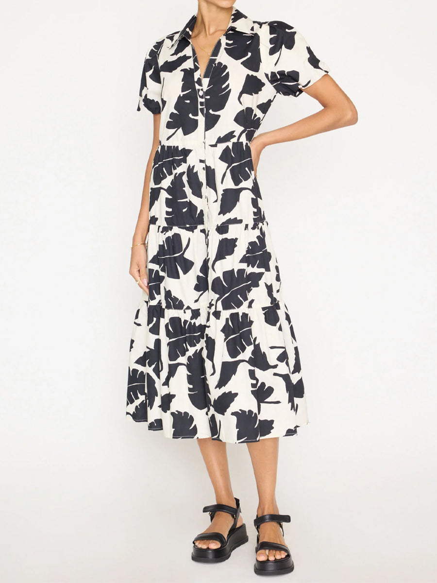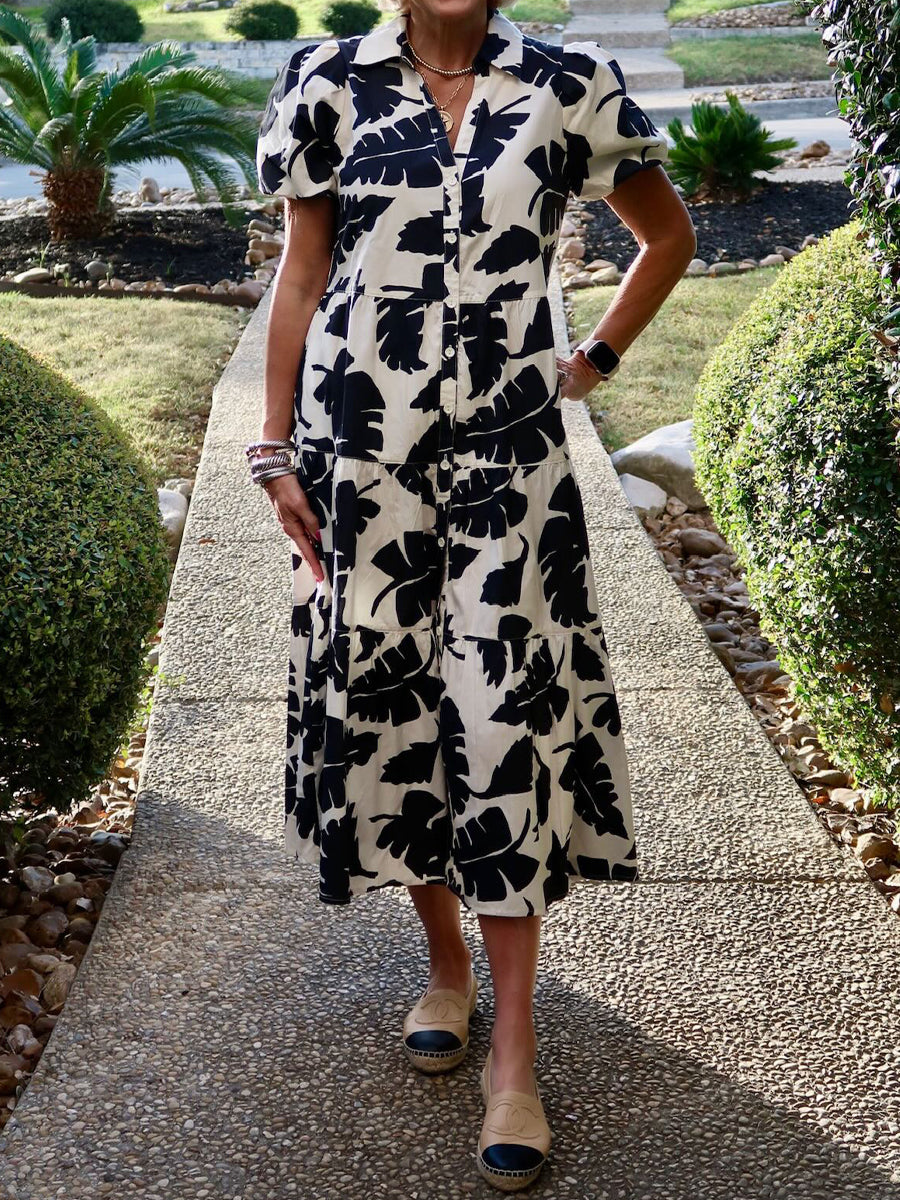 Printed Puff Sleeve Midi Dress